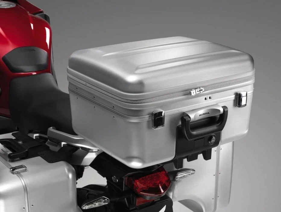 *Uitbreidbaar van 32 tot 39ltr.*Ruimte genoeg voor 1 integraal helm.*Met snel sluit systeem.*Aluminium look.*Moet gecombineerd worden met bracket 08Z70-MGH-640.