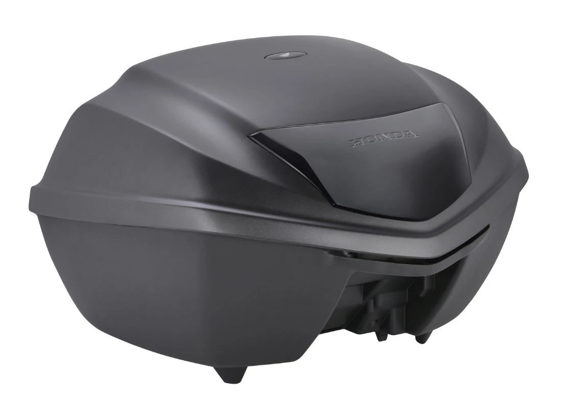 Handige 35 liter Honda topkoffer met ruimte voor 1 integraalhelm. Met Wave-sleutel systeem. De volgende producten zijn benodigd voor de installatie van de Honda topkoffer: